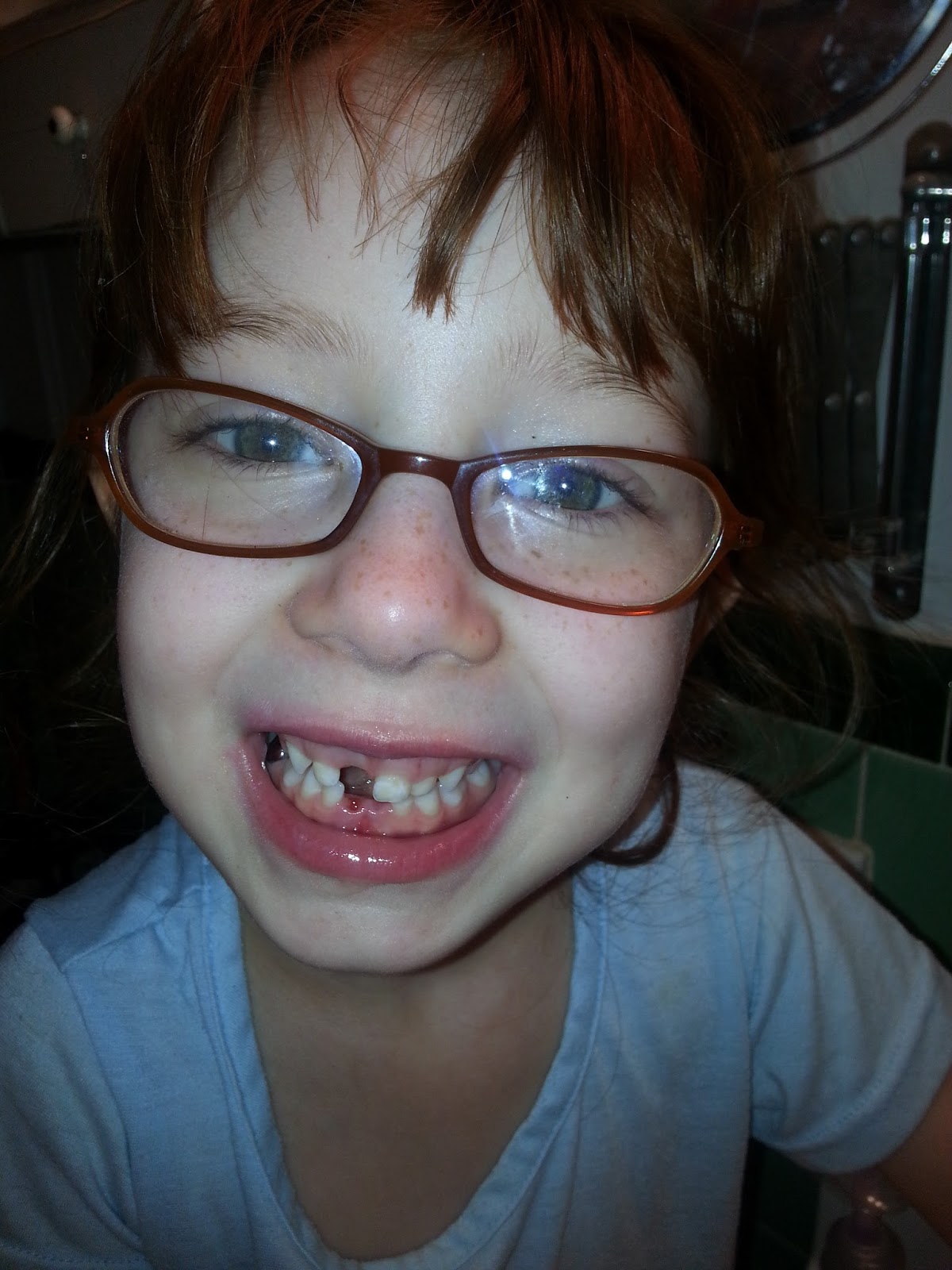 Let me tell you. In my last post, she had just lost a tooth after a LONG battle trying to get it out. She cried and worried about that tooth for over a week.